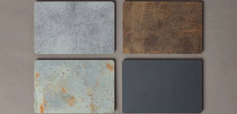 Ki-Kern heeft een zeer ruim assortiment aan kleuren en dessins. Uit voorraad is er al een scala aan platen om uit te kiezen. Naast de primaire kleuren, heeft Ki-Kern ook pastelkleuren, witte en zwarte tinten en bestaan er houten en stalen decors.